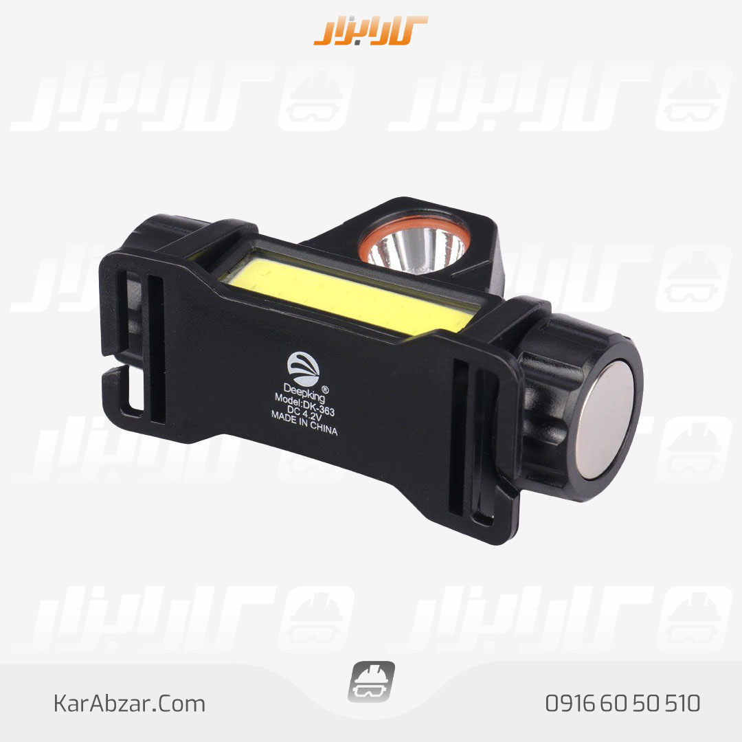 قیمت خرید چراغ پیشانی دیپ کیمگ مدل DK-363چراغ قوه پیشانی هدلایت شارژی Deepking DK-363 تامین انرژی از طریق باتری داخلی با ظزفیت 800 میلی آمپر ساعت با قابلیت شارژ مجدد از طریق پورت میکرو یو اس بی مجهز به چراغ قوه SMD LED با حالت نوردهی مهتابی ثابت قوی و نوردهی چراغ COB مهتابی با حالت نور ثابت قوی تعبیه کلید فیزیکی بر روی بدنه به منظور سوئیچینگ، خاموش و روشن کردن محصول و تغییر حالت نور و کاهش شدت تابش نور متریال ساخت پلاستیک باکیفیت مقاوم در برابر قطرات آب، ضربه و فشار احتمالی به همراه بند با امکان تنظیم ارتفاع جهت قرارگیری بهتر بر روی سر نکات مهم برای استفاده درست از چراغ پیشانی نور چراغ را مستقیماً به سمت چشم افراد نتابانید، تا به بینایی افراد آسیب وارد نشود. چراغ را در تماس با مواد قابل اشتعال و انفجاری قرار ندهید. بعد از شارژ شدن چراغ، آن را از برق جدا کنید. در صورت عدم استفاده طولانی مدت، چراغ را هر 3 ماه یکبار شارژ کنید تا باتریهای داخلی چراغ آسیب نبیند و عمر آن کوتاه نشود.